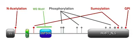 There is one predicted N-terminal acetylation site found in the protein LENG9 at the serine amino acid position 3.[19]