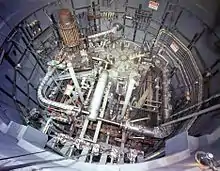 The liquid fluoride thorium reactor (LFTR; often pronounced lifter) is a type of molten salt reactor. LFTRs use the thorium fuel cycle with a fluoride-based molten (liquid) salt for fuel. In a typical design, the liquid is pumped between a critical core and an external heat exchanger where the heat is transferred to a nonradioactive secondary salt. The secondary salt then transfers its heat to a steam turbine or closed-cycle gas turbine.[1]