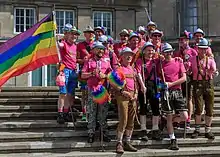 In 2004 the San Diego chapter of Gay, Lesbian and Straight Education Network (GLSEN) worked with San Diego Youth Pride coordinators to organize a Day of Silence throughout the county.[56] In 2005, Decatur (Georgia) Youth Pride participated in a counter-demonstration against Westboro Baptist Church (led by church head Fred Phelps' daughter Shirley Phelps-Roper), who were "greeting students and faculty as they arrived with words such as 'God hates fag enablers' and 'Thank God for 9/11'" at ten locations.[57] In 2008 Chicago's Youth Pride Center, primarily serving "LGBT youth of color", opened a temporary location and planned to move into their new building on Chicago's South Side in 2010.[58] In 2009, the Utah Pride Center held an event to coincide with Youth Pride Walk 2009, a "cross-country walk by two Utah women trying to draw attention to the problems faced by homeless LGBT youth".[59] In August 2010 the first Hollywood Youth Pride was held, focusing on the "large number of homeless LGBT youth living on Los Angeles streets."[60] According to a 2007 report, "Of the estimated 1.6 million homeless American youth, between 20 and 40 percent identify as lesbian, gay, bisexual or transgender".[61] At larger pride parades and festivals there are often LGBTQ+ or queer youth contingents, and some festivals designate safe spaces for young people.[62][63]