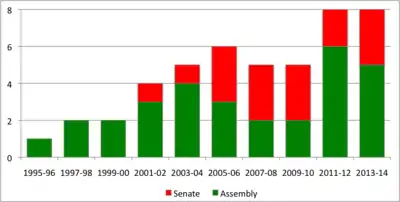 In June 2002 the California Legislative LGBT Caucus was founded; it is an American political organization composed of openly lesbian, gay, bisexual and transgender members of the California State Legislature.[37] This group is contrasted to other LGBT Equality Caucuses in that the California caucus consists entirely of LGBT legislators while other LGBT Equality Caucuses consist of all orientations. Both, however, promote the promulgation of LGBT-affirming laws within the legislature.