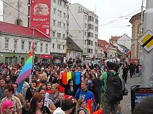 Slovakia's first gay pride event took place on 22 May 2010 in Bratislava. A crowd of about a thousand were confronted by anti-gay right-wing groups. While the National and Bratislava's municipal police forces kept the two sides apart, several anti-gay protesters were able to infiltrate the event and throw stones at speakers and disperse tear gas into the crowd. Pride demonstrators had to cancel their march through the city centre, but were able to cross the Danube under police protection. Twenty-nine persons were arrested.[75] The event has since improved its security measures and it has been supported by many foreign embassies.[76]