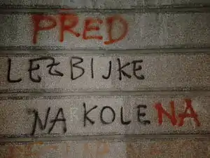 In March 2019, a brick was thrown through the window of Društvo DIH – Enakopravni pod mavrico, an LGBT NGO.