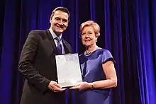 On 13 April 2017, the Tasmanian Government, represented by Premier Will Hodgman, issued an official parliamentary apology to members of the LGBT community in Tasmania who had been historically affected by laws which criminalised homosexuality in the state until 1997. Hodgman stated that "it is [the government's] view that the broader Tasmanian community would believe that people should never have been charged or convicted in the first place, even if it was thought at the time it was the right thing to do, it was not".[36] Leader of the Opposition Rebecca White also issued an official apology, saying an apology was "long overdue" for the "terrible injustice done as a result of these laws". Cassy O'Connor, leader of the Greens, asked the LGBTI Tasmanian community "to forgive us for not holding you in our arms".[36][37]