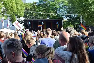 In addition, the Faroese LGBT population received support from well-known Faroese figures such as singer-songwriter Eivør Pálsdóttir, who defended gay people in an interview with Icelandic media, saying that those with narrow-minded opinions on gays and transgender people should be ignored.[47][48]