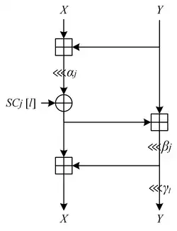 The bit rotation amounts , , used in are shown in the following table.
