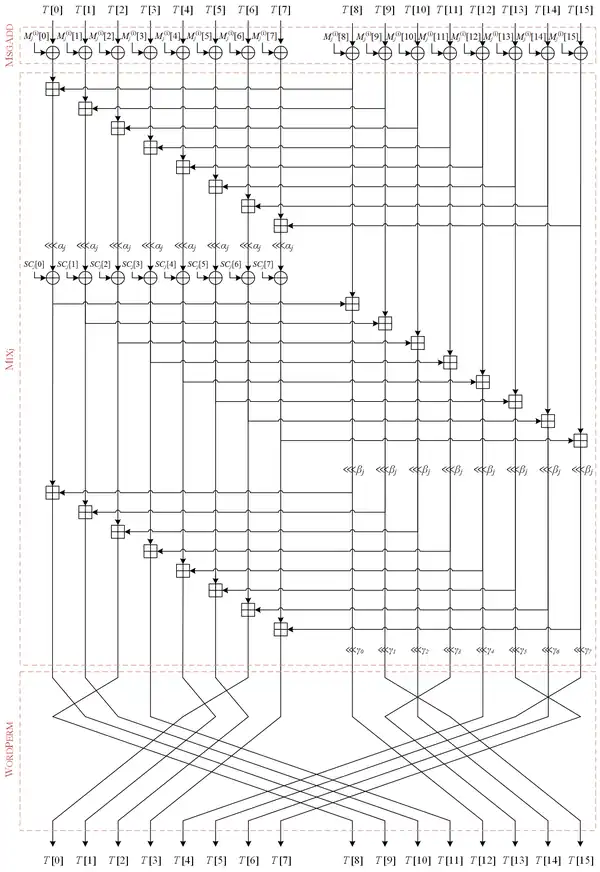 Let be a 16-word array. The word-permutation function is defined as follows.