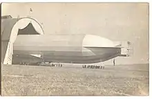 Schwaben was destroyed in a gale on June 28, 1912 at the airfield near Düsseldorf,[6][7] The wind prevented it being put into its shed, and it broke loose from its moorings and broke its back. The hydrogen was ignited by spark caused by static electricity accumulated in the rubberised cotton gasbags:[8] in moments the entire ship had been burnt. Sources differ regarding injuries suffered: the New York Times reported "34 soldiers were injured";[9] others claimed either 30[7] or 40 injured.[10]