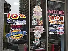 La Belle Province serves breakfast and lunch, including items such as poutine, club sandwiches, hamburgers, Montreal hot dogs,[4] smoked meat sandwiches, and souvlaki.