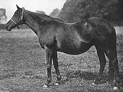 La Fleche (French for The Arrow), a brown mare standing just under 16 hands high[2] was bred by the Royal Studs at Hampton Court and was foaled on 10 March 1889.[3] She was an exceptionally well-bred and "beautiful" filly and attracted much attention[4] when she was sent to be auctioned as a yearling on 28 June 1890 at the Bushey Paddocks.[3] She was bought by Lord Marcus Beresford on behalf of the financier Baron Maurice de Hirsch[4] for a sum of 5,500 guineas, outbidding the Duke of Portland and John Porter[5] and breaking the record for a yearling sold at auction, which had stood since 1876.[6]