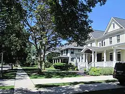 The La Grange Village Historic District is a national historic district encompassing a large section of the village of La Grange, Illinois. The district includes over 1000 buildings, most of which are residences. Development in the district began in the 1870s after the Chicago, Burlington and Quincy Railroad began serving two stations in La Grange; nearly all of the buildings within the present-day district were built between then and 1930. Several popular architectural styles of the period are represented in the district, including large collections of Prairie School, Queen Anne, and Victorian houses. The district includes three designs by Frank Lloyd Wright as well as works by John S. Van Bergen, Enock Hill Turnock, and J. C. Llewelyn.[2]