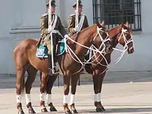 La Moneda Palace Guard (Spanish: Guardia de Palacio de la Moneda) is the ceremonial escort to the president of Chile and also assists with physical security at La Moneda Palace. It is an operational component of the Carabineros de Chile.