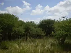 The general aspect of the central-eastern part of the province is that of a plain gently tilted to the east that is dissected by valleys.[4] The surface of the plain has a calcrete crust. The valleys of La Pampa, known as the transverse valleys (Spanish: valles transversales) are NE-SW oriented, with breadths of various kilometers and lengths of tens of kilometers. Some of the valleys host very large fossil inland dunes.[4] Formerly functioning as windfunnels for sand[4] at present these valleys are an ecotone region between the Dry and Humid Pampas.[5]