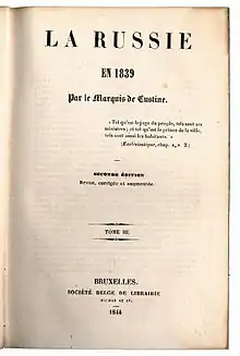 - La Russie en 1839 at Project Gutenberg: volume I, volume II, volume III, volume IV