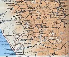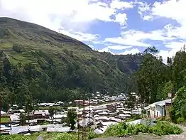 La Unión is a town in central Peru, capital of the province Dos de Mayo in the region Huánuco. The city is over the Vizcarra river and has two districts, Aguamiro on the right bank and Ripán on the left bank. It has a regional hospital. Close to the city, over a flat highland or meseta (12,000 feet over sea level) is the old famed Inca city called Wanuku Pampa, Wanuku Marka or Wanuku Viejo. The most important festival is by the end of July and it is called "La Fiesta del Sol".[1]