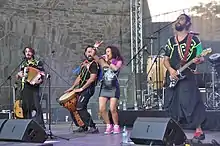 A few years after joining her studies, she joined an alternative group called De La Guarda. There were two music directors, one of whom was King Coya (Argentinean electro-cumbia producer). That opened the way for her to start performing in public, to sing in front of thousands of people.[3]