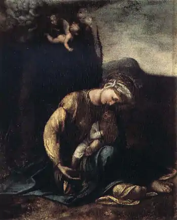 La Zingarella (literally The Little Gypsy Girl) is a 49 x 37 cm oil on panel painting by Correggio dating to around 1516-1517. It shows the Rest on the Flight into Egypt, although (as also seen in works around the same time by Dosso Dossi[1]) it omits the figure of Saint Joseph. It is now in the Museo Nazionale di Capodimonte in Naples.