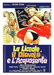 La liceale, il diavolo e l'acquasanta (The high school student, the devil and the holy water) is a 1979 commedia sexy all'italiana directed by Nando Cicero.[1] It is the fourth chapter in the "Liceale" film-series and the last starred by Gloria Guida. Unlike the previous films, it is an anthology film in which the three main actors of the series (Gloria Guida, Lino Banfi and Alvaro Vitali) star in three separate segments.[2]