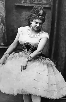 1869 was a productive and successful year for Offenbach. Vert-Vert, an opéra comique by him in three acts had its premiere at the Paris Opéra-Comique on 10 March.[1] This was followed less than two weeks later by the first performances of his opéra bouffe La diva at the Bouffes-Parisiens on 22 March. On 31 July La princesse de Trébizonde was given its premiere at Baden-Baden under the direction of the composer. In December of the same year, in the space of five days, the revised three-act version of La princesse de Trébizonde had its first performance on the 7th at the Bouffes-Parisiens, followed by the world premiere of the three act opéra bouffe Les brigands on the 10th at the Théâtre des Variétés in Paris and the premiere of the one act La romance de la rose took place at the Bouffes-Parisiens the following day.[1]