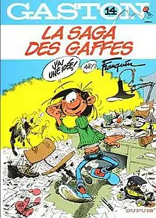 La saga des gaffes, written and drawn by Franquin, is the fourteenth album of the original Gaston Lagaffe series. It is made up of 44 strips previously published in Spirou.