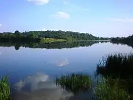 The Labūnava Reservoir is an artificial lake in Kėdainiai District Municipality, central Lithuania. It is located 11 kilometres (6.8 mi) south from Kėdainiai, next to Labūnava village. It was created in 1977, when a dam on the Barupė river had been built next to Labūnava village.[2] In 2003, the dam was reconstructed and a small hydroelectric plant (of 160 kW) has been built.
