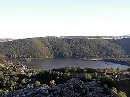 Lac Chambon is a lake in Puy-de-Dôme, France. At an elevation of 877 m, its surface area is 0.6 km².