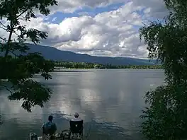 Lac de Divonne is an artificial lake at Divonne-les-Bains, France. The lake has a surface area of approx. 40 ha (99 acres).