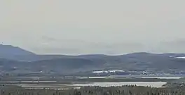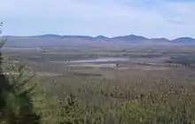![]() The Lac des Joncs covered with ice, in the foreground, surrounded by the also frozen marsh. The unfrozen part at the back is Lac Mégantic. (view from Chemin Louise-Bocage). | |
