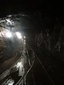 Visitors board a mine car and descend the #190 slope, about 250 ft (76 m) below ground, into the Clark Vein of coal. The tour proceeds, on foot, through several twisting veins of the abandoned mine.[5]