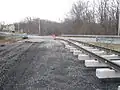 | 3. Route 602 grade crossing | 47.0 | 47.0 | No | Raise utility wires that cross the railroad right-of-way; adjust height of roadway and/or Cut-Off roadbed; install tracks across roadway with quad gates (2025). This will be a "quiet zone": trains will not sound their horns when approaching.[26] | ![]() |