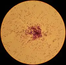 Lactococcus lactis is a gram-positive bacterium used extensively in the production of buttermilk and cheese,[1] but has also become famous as the first genetically modified organism to be used alive for the treatment of human disease.[2] L. lactis cells are cocci that group in pairs and short chains, and, depending on growth conditions, appear ovoid with a typical length of 0.5 - 1.5 µm. L. lactis does not produce spores (nonsporulating) and are not motile (nonmotile). They have a homofermentative metabolism, meaning they produce lactic acid from sugars. They've also been reported to produce exclusive L-(+)-lactic acid.[3] However,[4] reported D-(−)-lactic acid can be produced when cultured at low pH. The capability to produce lactic acid is one of the reasons why L. lactis is one of the most important microorganisms in the dairy industry.[5] Based on its history in food fermentation, L. lactis has generally recognized as safe (GRAS) status,[6][7] with few case reports of it being an opportunistic pathogen.[8][9][10]