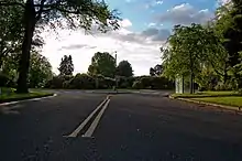 The narrow streets of Ladd's Addition are lined with American Elm trees. The Save Our Elms organization inoculates the elm trees yearly against Dutch elm disease.[8] Each of the four smaller, diamond-shaped "circles" to the east, west, north, and south contains one of Portland's rose test gardens.[9] Friends of Ladd's Addition Gardens regularly solicits money and volunteers to maintain the rose gardens.[10] Ladd named most of the streets after trees, but he named SE Ladd Avenue and SE Elliott Avenue for himself and his wife, who was born Caroline Elliott.[11]