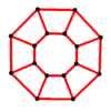 The circular ladder graph CLn is constructible by connecting the four 2-degree vertices in a straight way, or by the Cartesian product of a cycle of length n ≥ 3 and an edge.[4] In symbols, CLn = Cn × P2. It has 2n nodes and 3n edges. Like the ladder graph, it is connected, planar and Hamiltonian, but it is bipartite if and only if n is even.