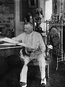 In the autumn of 1912, he formally announced his retirement and that he would return to Vienna after close to twenty years in Washington D.C.[18] His long years of service, along with the fact that his friend Count Lexa von Aehrenthal had died earlier that year, likely contributed to this end.[19] He was succeeded as US Ambassador by Konstantin Dumba, who held the post until 1915 when he was declared persona non grata and expelled from the country by President Wilson.