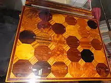 The Lady's workbox in the Judges' Lodgings Museum, Lancaster, was made in 1808 in Lancaster by Gillows (trading as Robert Gillow and Brothers).[1]