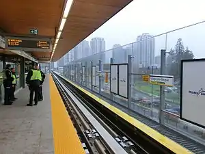 Lafarge Lake–Douglas is a rapid transit station on the Millennium Line, part of Metro Vancouver's SkyTrain system, which serves as the line's outbound terminus. It is located in Coquitlam, British Columbia, Canada and opened for service on December 2, 2016, along with the rest of the Evergreen Extension.[3][4][5]
