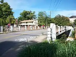 The Lafayette Street Overpass is a historic bridge in Fayetteville, Arkansas. It is a three-span reinforced concrete girder structure, carrying Lafayette Street over the tracks of the St. Louis–San Francisco Railway. The bridge is about 120 feet (37 m) long and 30 feet (9.1 m) wide, and consists of reinforced concrete spans resting on concrete abutments. It features an Art Deco railing, with a metal balustrade covering concrete piers with inset light fixtures. The bridge was built in 1938 by Edward B. Mooney, Inc.[2]