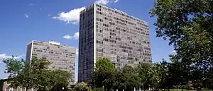 Lafayette Towers Apartments East (1301 Orleans Street, Detroit, Michigan) is one of two identical apartment buildings designed by Mies van der Rohe. The other is Lafayette Towers Apartments West.