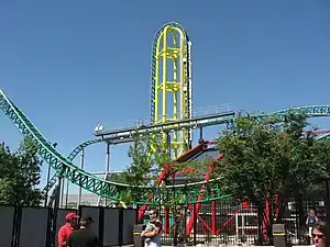 | Rocket | S&S Worldwide | 1999 | Combo Tower | A drop tower with two different ride types: "Blast Off," a rapid vertical ascent, and "Re-Entry," a slow ascent followed by a powered drop. | North Midway | 6 |