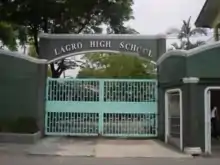 Lagro High School (Tagalog: Paaralang Sekundarya ng Lagro) is a public high school in the Lagro District of Quezon City in Metro Manila, Philippines. The school was founded as Novaliches High School in 1974 by the local homeowners association, and inaugurated as Lagro High School in 1978. Current enrollment is about six thousand students.[2]