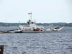 The LaHave River is a 97 km (60 mi) river in Nova Scotia, Canada, running from its source in Annapolis County to the Atlantic Ocean.[2] Along its way, it splits the communities of LaHave and Riverport and runs along the Fairhaven Peninsula and bisects the town of Bridgewater flowing into the LaHave River estuary. Tides affect water levels for about 20 km up the river.[3] There are a number of tourist attractions along the river,[4] and it is also well-used for recreational sailing.[5] As well as two bridges at Bridgewater, the river can be crossed by a cable ferry at the Community of LaHave.[6][7]