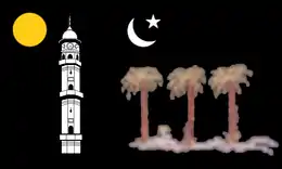 During the annual gathering of the community in December 1939, after hoisting the Ahmadiyya flag and the Khuddam-ul Ahmadiyya Flag, Khalifatul Masih II arrived in the Ladies section of the gathering and while reciting the prayer O our Lord, accept this from us for you are surely All-Hearing, All Knowing, hoisted the flag which would represent the women of the Ahmadiyya Jama’at (community). The flag pole was 35 feet high and the flag was 3 ¾ meters in length and 2 ¼ meters in width. In addition to the graphics of the Ahmadiyya flag, it had three date trees with a stream flowing underneath them. The flag was made of satin and its design was stitched with a machine using different color silk threads. The ladies were so enthusiastic on that day that they began shouting religious slogans freely. The slogans were initiated by a teacher named Memoona Sahiba. The wives of the Khalifa as well as the ladies belonging to the family of Mirza Ghulam Ahmad were gathered around him, including his mother and widow of Ghulam Ahmad, Sayyeda Nusrat Jahan Begum.