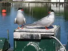 Since 1980 all chicks have been ringed and breeding success estimated. Since 1992, all fledglings (more than 5000 so far) also get a passive transponder inserted, identifying them individually.[4][5] An automatic antenna recording system identifies individual terns when they return to the breeding site each season, without birds having to be trapped. Antennas are distributed in prominent places around the colonies and also placed around nests to identify breeding partners. Scales are also distributed around the colony, to record individual weights throughout the season. This system collects data on arrival dates, body weights, breeding partners and breeding success of hundreds of individuals each breeding season with minimal disturbance. These life histories provide important information on the population ecology of long-lived birds.