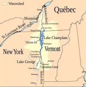 | Settlements | Burlington, Vermont; Plattsburgh, New York |