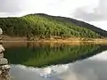 Lake Doxa (Greek: Λίμνη Δόξα, romanized: Limni Doxa) is an artificial lake in western Corinthia, Greece. It is situated at an elevation of 900 m, in the municipal unit Feneos, near the village Archaia Feneos. Construction was completed in the late 1990s. It is fed and drained by the small river Doxa (Δόξα), which empties into the plain of Feneos. In the heart of the lake on a small peninsula features a small church of Agios Fanourios. The Saint George Monastery in Feneos was relocated to higher ground, north of the lake. The lake is surrounded by pine forests.