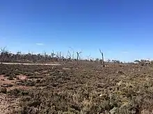 The area is part of the Dumbleyung Vegetation System, which is mostly gently undulating with scattered cappings of laterite in the north with salt-flats and lakes found in the larger valleys often with sand deposits. The system is composed of open woodland areas of york gum, red morrell, salmon gum and wandoo while the salt-flats have mallees, teatree and samphire. Other species found on the fringes of the lake include Eucalyptus occidentalis, Eucalyptus spathulata, Allocasuarina huegeliana, Casuarina obesa, Banksia prionotes, Melaleuca pritzelii and Verticordia huegelii var. tridens.[11]