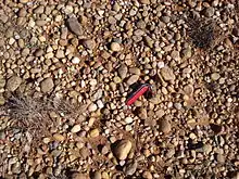 Up to 30 feet of fluvial deposits of unconsolidated gravel, sand, and silt mapped as terrace deposition by the 1987 Texas Atlas of Geology.[4] Gravels are granule-to-cobble size, with clasts of angular to well-rounded quartzite, quartz, and chert from distal sources and lesser fragments of local strata. The sands are orange-brown to tan, fine- to coarse-grained with preserved soils.