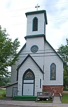 The Methodist Episcopal Church (1893) at 53237 N Avenue is a Gothic Revival front-gabled church on a sandstone foundation. It has a square steeple and Gothic arched windows.[1]