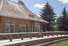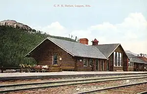 The station was originally built for the CPR. The station was declared a heritage railway station by the federal government in 1991.[3] Starting in 1909, it was the first of six mountain stations built by the Canadian Pacific in a rustic log building design, consistent with how the railway marketed the region as a wilderness tourist destination.[4]