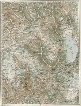 ![]() Austro-Hungarian map from 1887 depicting Lake Malik on the bottom right side, south of lake Ohrid. | |