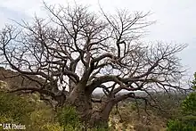 Grasslands are dominated by Cynodon dactylon in dry locations, or by Sporobolus spicatus, often in association with Sporobolus consimilis on the alkaline lake flats. Sporobolus spicatus is dominant on exposed lakebed and can be very extensive during low lake levels, becoming restricted to a narrow zone above the high water mark when lake levels are high. There are extensive areas of Psilolemma jaegeri grasslands outside the park, along the eastern shore of the lake.[13] Vegetation on the escarpment is characterized by Ruellia megachlamys and African baobab trees (Adansonia digitata).[6]